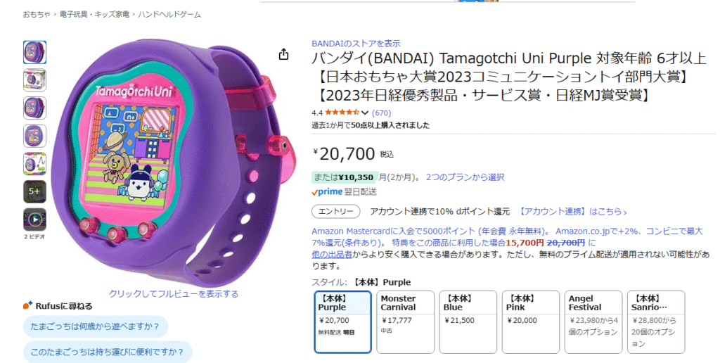 さすがに、ハマるかどうかもわからないおもちゃに20000円も払えないよ~~~~!!!?となり、いったんたまごっちUniは断念。